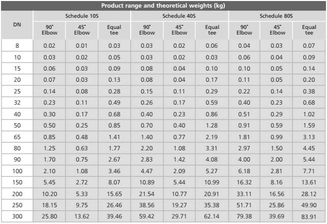 - Weight Chart Of SS UNS S30400 Buttweld Pipe Fittings